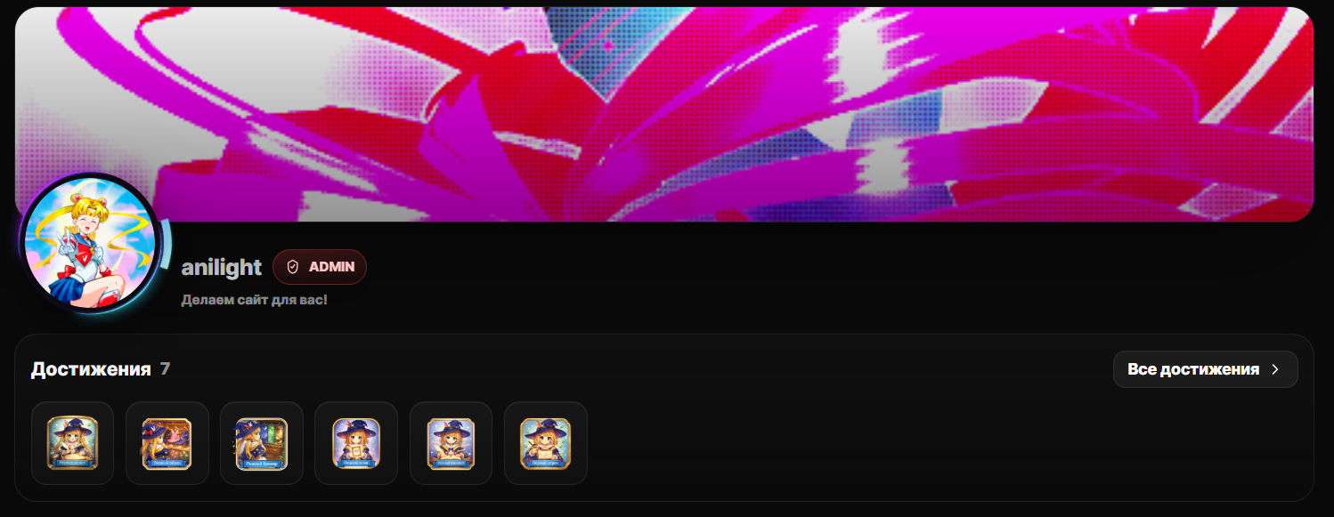 На сайт добавлен функционал достижений, за которые вы будете получать XP и LC (LightCoin)
